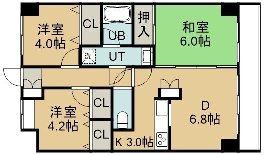 3DK(59.4m²)└ 8階:D6.8帖 K3帖 和室6帖 洋室4.2帖 洋室4帖