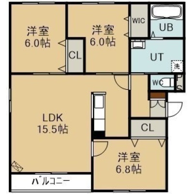 3LDK(76.2m²)└ 4階:LDK15.5帖 洋室6.8帖 洋室6帖 洋室6帖