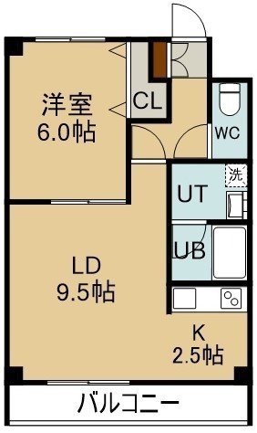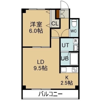 1LDK(39.6m²)└ 3階:LD9.5帖 K2.5帖 洋室6帖