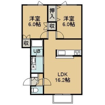 2LDK(56.19m²)└ 2階:LDK16.2帖 洋室6帖 洋室6帖