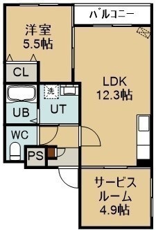 1SLDK(50.45m²)└ 4階:LDK12.3帖 洋室5.5帖 S4.9帖