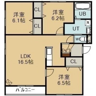 3LDK(78.63m²)└ 3階:LDK16.5帖 洋室6.5帖 洋室6.2帖 洋室6.1帖