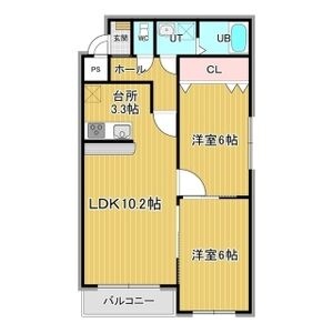 2LDK(55.08m²)└ 4階:LD10.2帖 K3.3帖 洋室6帖 洋室6帖