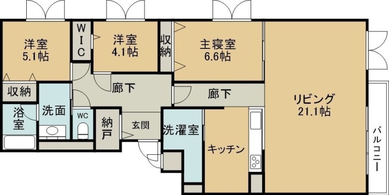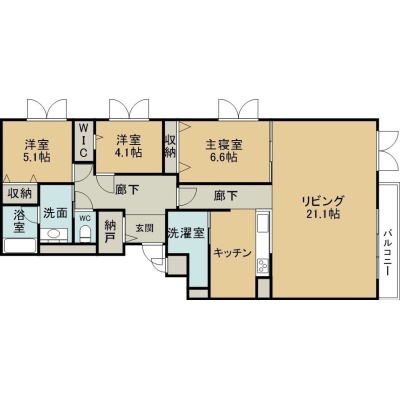3LDK(108.91m²)└ 2階:LDK21.1帖 洋室6.6帖 洋室5.1帖 洋室4.1帖