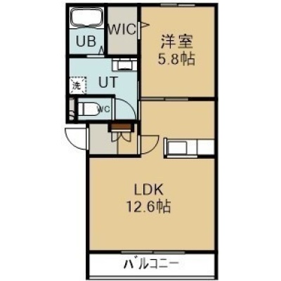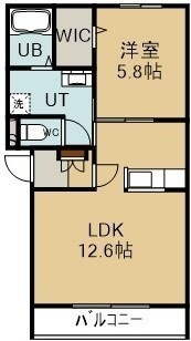 1LDK(43.22m²)└ 2階:LDK12.6帖 洋室5.8帖
