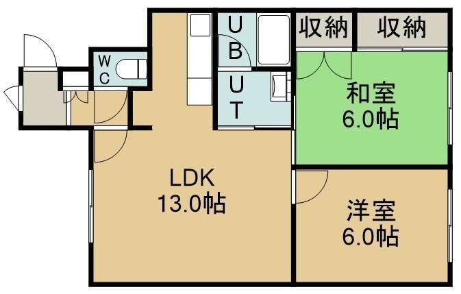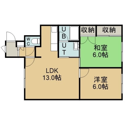 2LDK(57.45m²)└ 1階:LDK13帖 洋室6帖 和室6帖