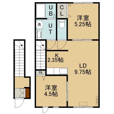 2LDK(51.96m²)└ 2階:LD9.75帖 K2.35帖 洋室5.25帖 洋室4.5帖