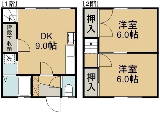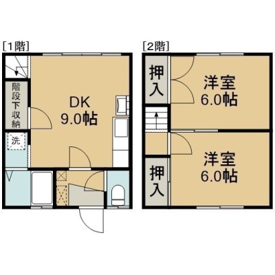 2DK(51.23m²)└ 1階:DK9帖 / 2階:洋室6帖 洋室6帖