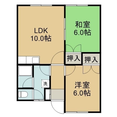 2LDK(44.8m²)└ 1階:LDK10帖 洋室6帖