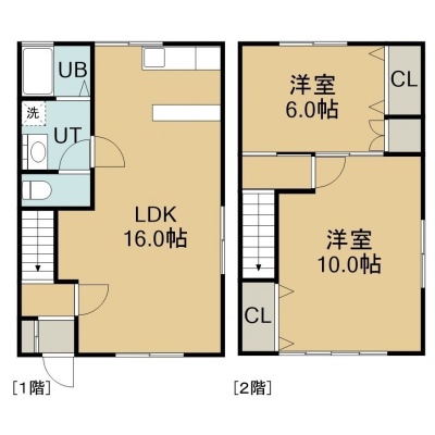 2LDK(61.98m²)└ 1階:LDK16帖 / 2階:洋室10帖 洋室6帖