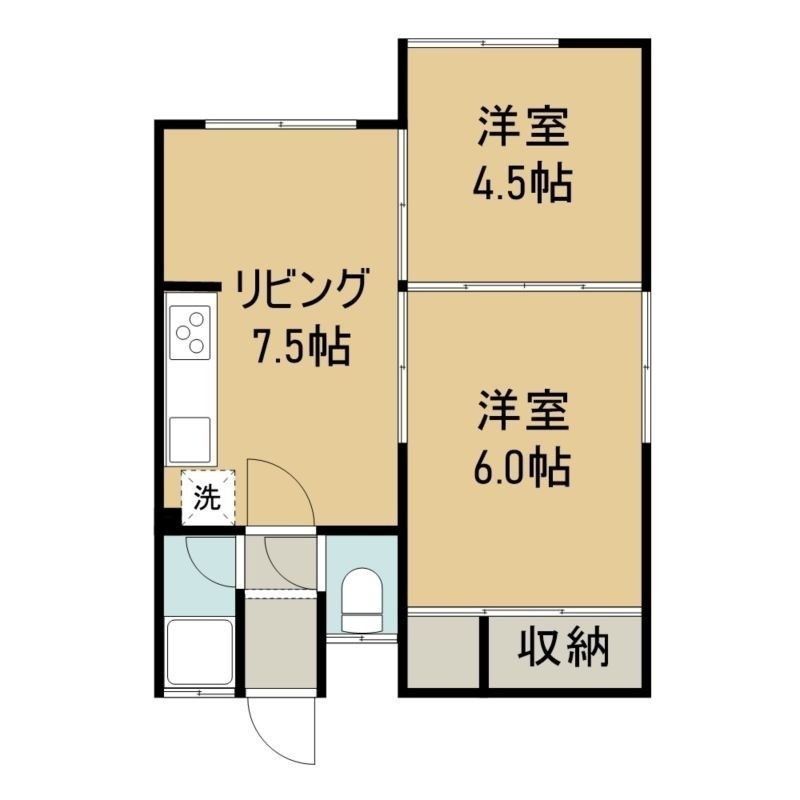 2DK(36.7m²)└ 2階:DK7.5帖 洋室6帖 洋室4.5帖