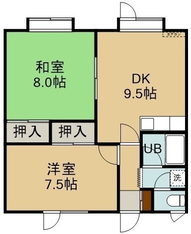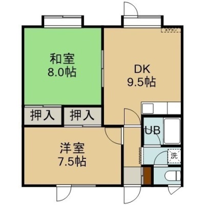 2DK(52.16m²)└ 2階:DK9.5帖 洋室7.5帖