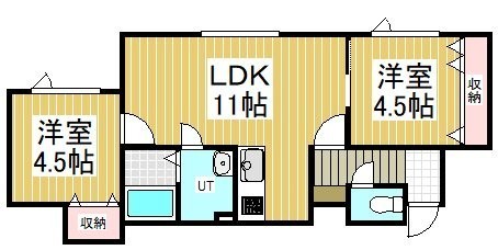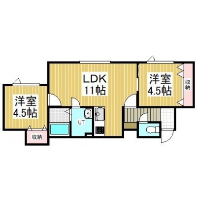 2LDK(46.27m²)└ LDK11帖 洋室4.5帖 洋室4.5帖