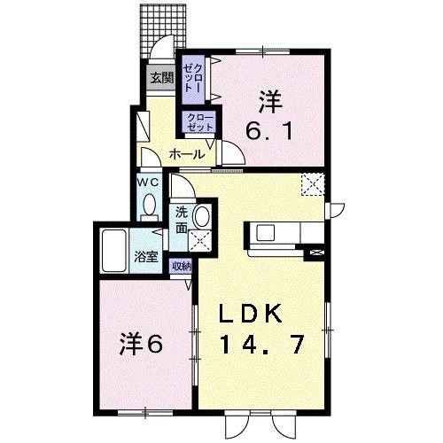 2LDK(57.22m²)└ 洋室6.1帖 洋室6帖 LDK14.7帖