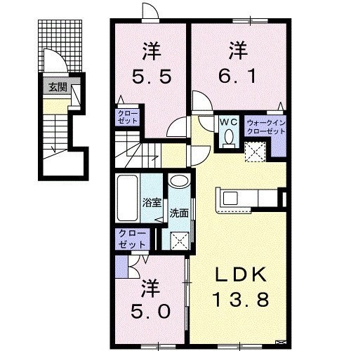 3LDK(66.55m²)└ 洋室6.1帖 洋室5.5帖 洋室5帖 LDK13.8帖
