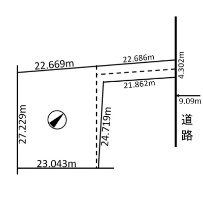 総区画数-/- 接道状況 一方 - 北東側幅9.09mの公道に4.30m接道