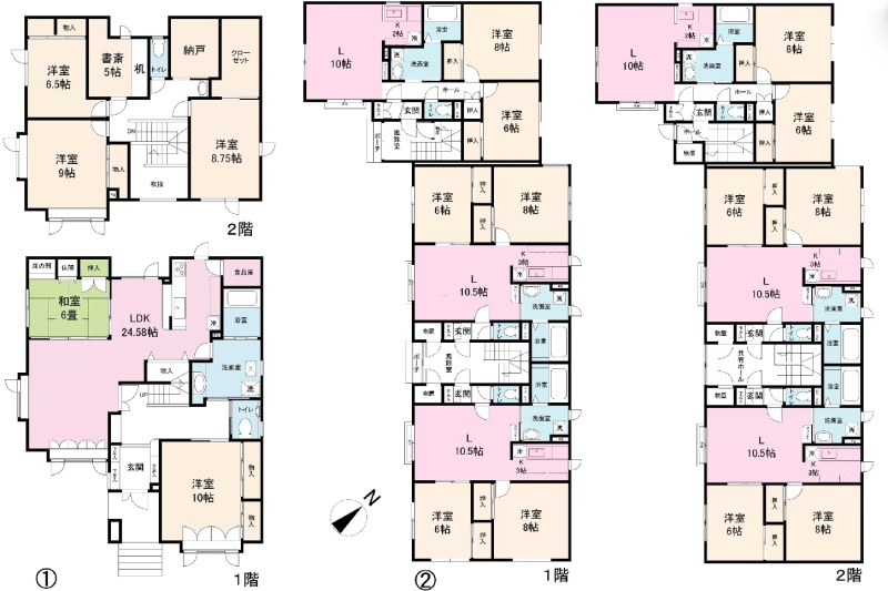 ①野幌寿町一戸建て(5SLDK) ②ことぶき参番館(2LDK×6)