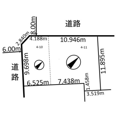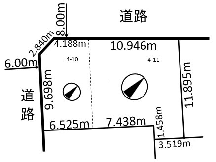 - 南西側幅6.00mの公道に9.69m接道