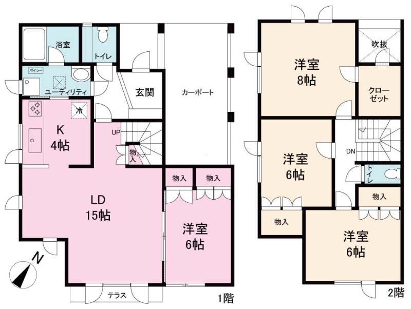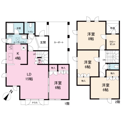 | 間取り | 4LDK1階:LD15帖 和室6帖 / 2階:洋室8帖 洋室6帖 洋室6帖 / その他:K4帖 |