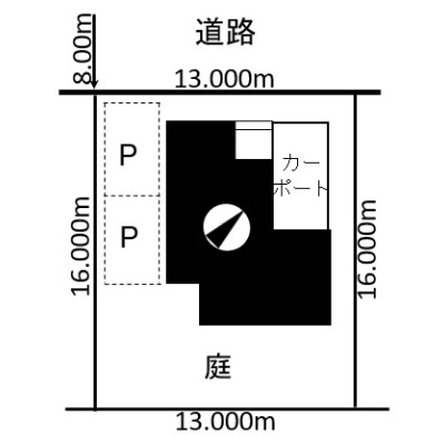 建物の階建 地上2階建 主要採光面 構造 木造 接道状況 一方 - 北西側幅8.00mの公道に13.00m接道