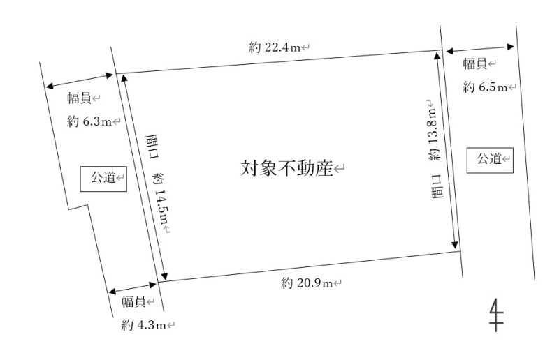 - 西側幅4.30mの公道に14.50m接道
