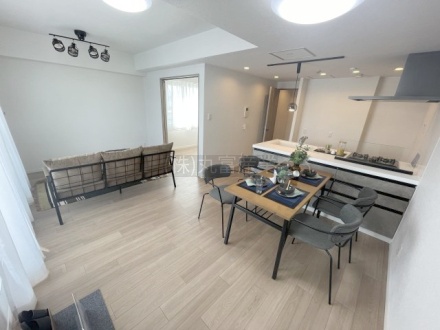 ここに注目!リノベーション済の物件です。グレーを基調とした落ち着きのあるのびのびできるリビング、デザイン性の高い照明で日常にお洒落を!南東向きの8階で、陽当り眺望良好です。