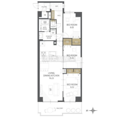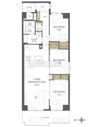 3LDK(73.6m²)└ LDK16.2帖 洋室6.3帖 洋室5.3帖 洋室6帖