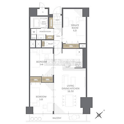 2SLDK(77.02m²)└ LDK16.9帖 洋室5.8帖 洋室5.4帖 S6.3帖
