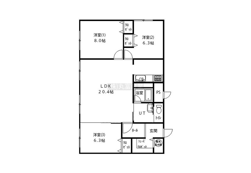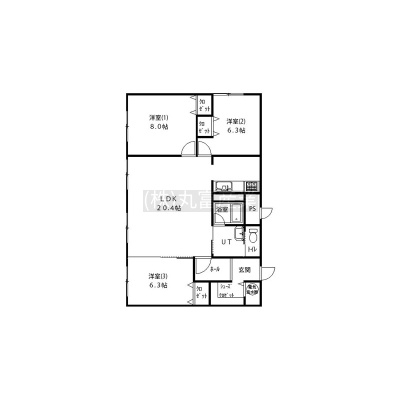 3LDK(91.99m²)└ LDK20.4帖 洋室8帖 洋室6.3帖 洋室6.3帖