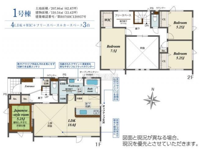 | 間取り | 4LDK1階:LDK18帖 / その他:和室5.25帖 |