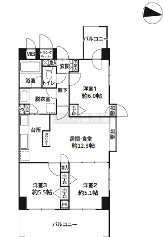 3LDK(62.8m²)└ LDK12.3帖 洋室6帖 洋室5.1帖 洋室5.5帖