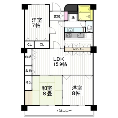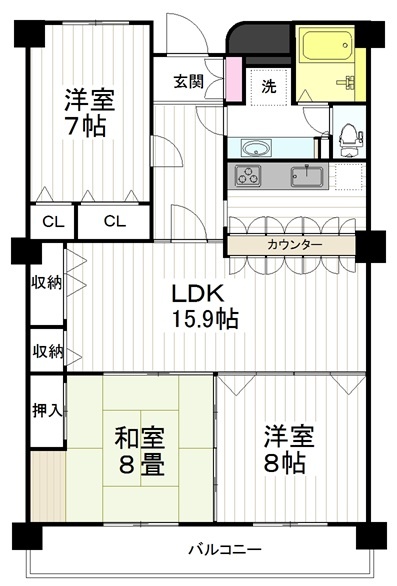 3LDK(92.72m²)└ LDK15.9帖 和室8帖 洋室8帖 洋室7帖