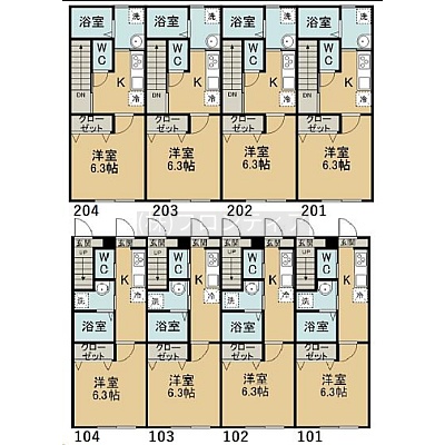 建物の階建 地上2階建 間取り 1K×8戸 駐車場 なし接道状況 一方 - 南側幅5.00mの公道に16.00m接道