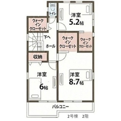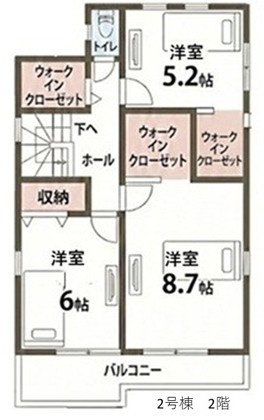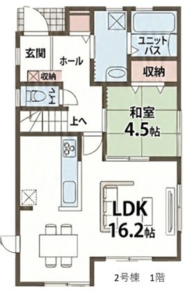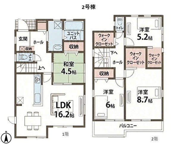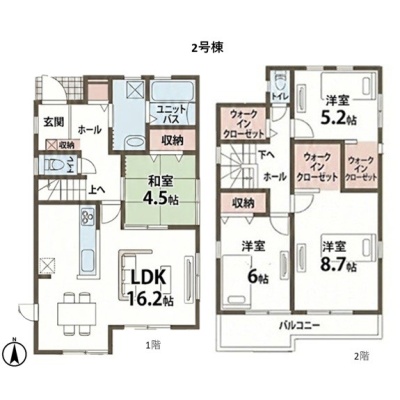 | 間取り | 4LDK1階:LDK16.2帖 和室4.5帖 / 2階:洋室8.7帖 洋室6帖 洋室5.2帖 |