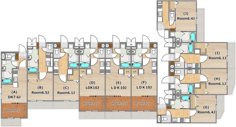 | 面積 | 建物:1540.81m² (466.09坪)/ 土地:849.01m² (256.82坪)(公簿)※セットバック済み 専有:最小24.05m² (7.27坪)~最大28.27m² (8.55坪) |