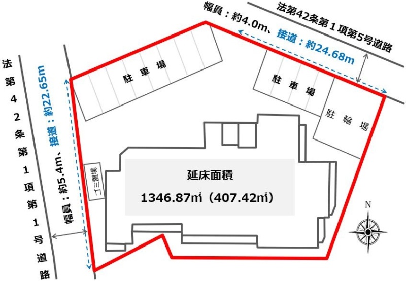 接道状況 二方(除角地) - 西側幅5.40mの公道に22.65m接道