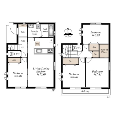 | 間取り | 4LDK1階:LDK15帖 洋室6帖 洋室7.87帖 洋室6.62帖 / 2階:洋室6帖 |