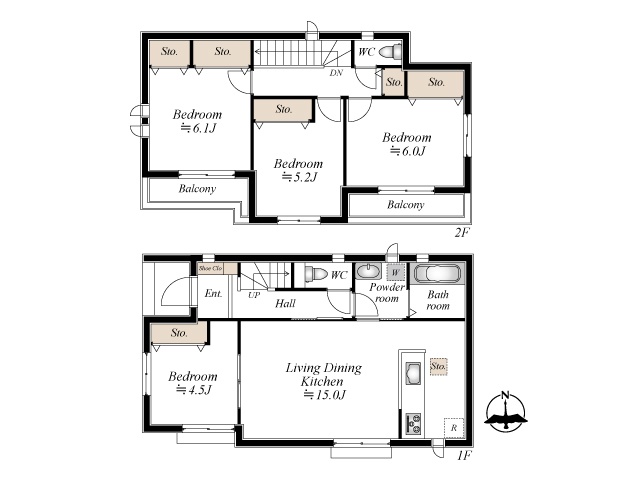 | 間取り | 4LDK1階:LDK15帖 洋室4.5帖 / 2階:洋室6.12帖 洋室6帖 洋室5.25帖 |