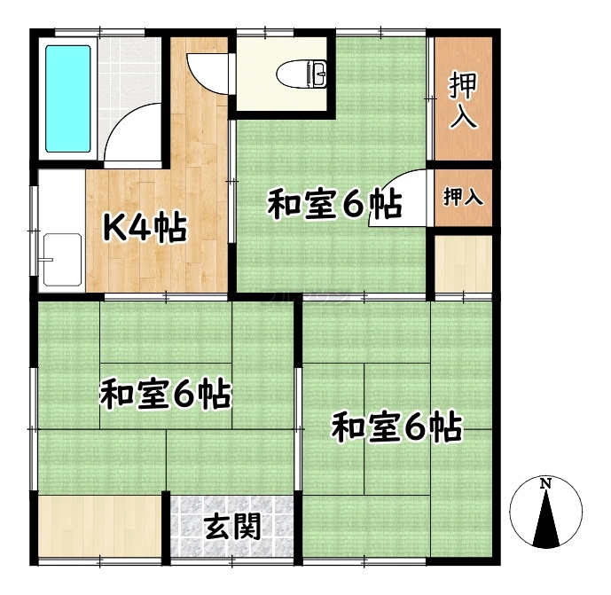 建物の階建 地上2階建 間取り 3K×4戸、3K×1戸、3K×1戸 駐車場 駐車場台数:6台接道状況 三方 - 南側幅6.00mの公道に接道