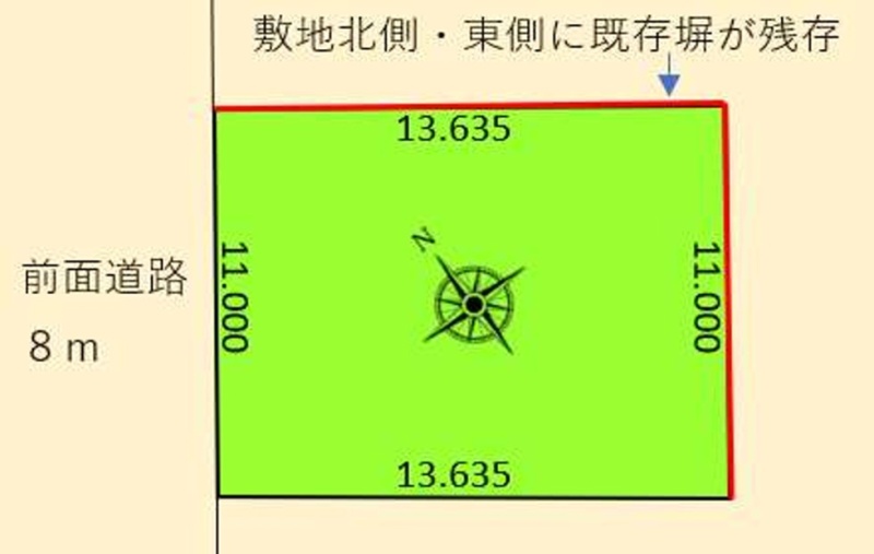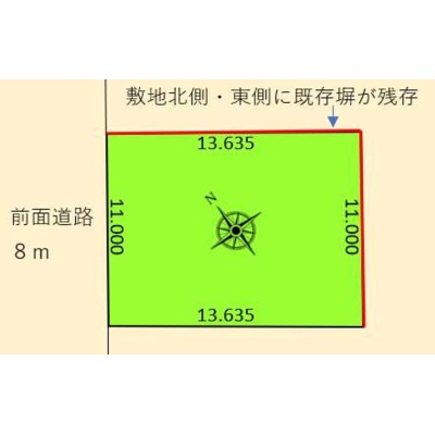 総区画数1区画/全1区画 接道状況 一方 - 北西側幅8.00mの公道に11.00m接道