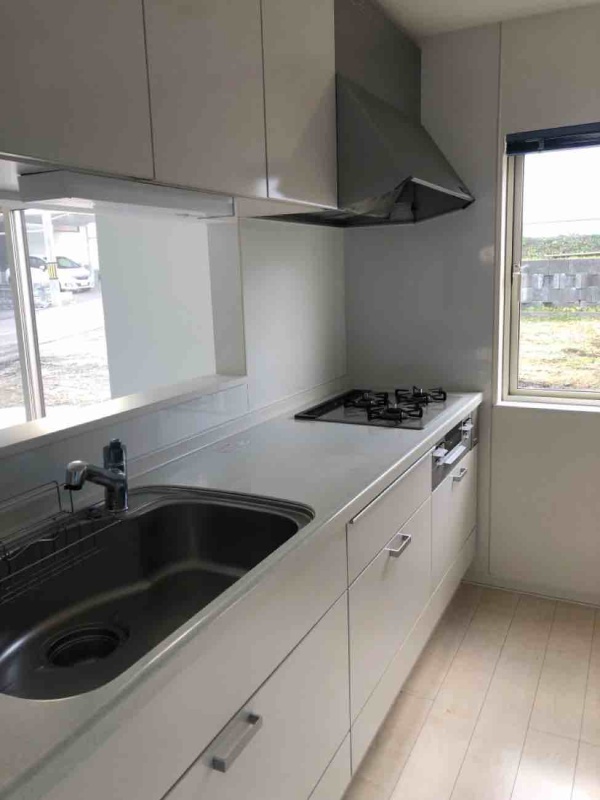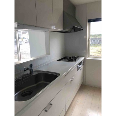 キッチンはガスコンロ交換済。対面式キッチンなので、リビングのお子様の様子を見ながら安心して家事ができます。