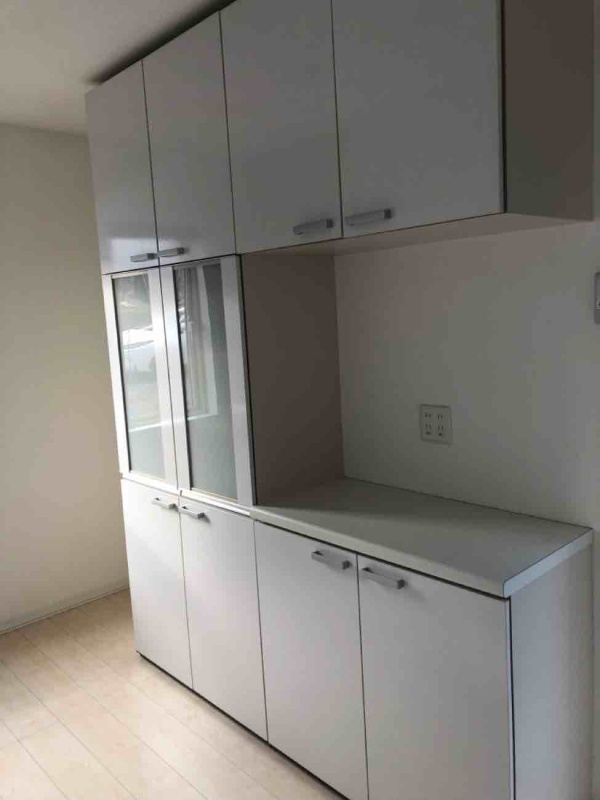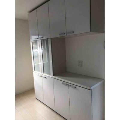 たっぷり入る大容量の背面収納で、キッチン周りのものがすっきりと片付きます。