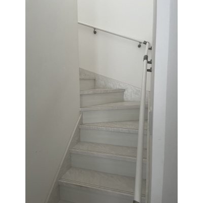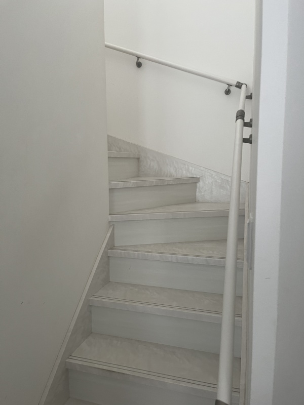 広く明るい印象の白を基調とした階段。
