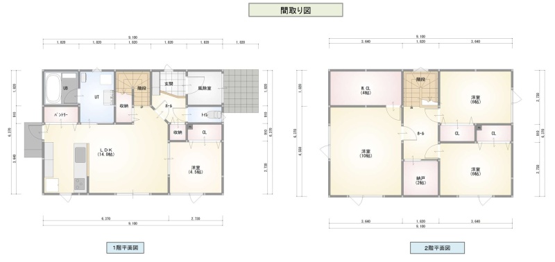 | 間取り | 4LDK1階:LDK14.8帖 洋室4.5帖 / 2階:洋室10帖 洋室6帖 洋室6帖 S2帖 |