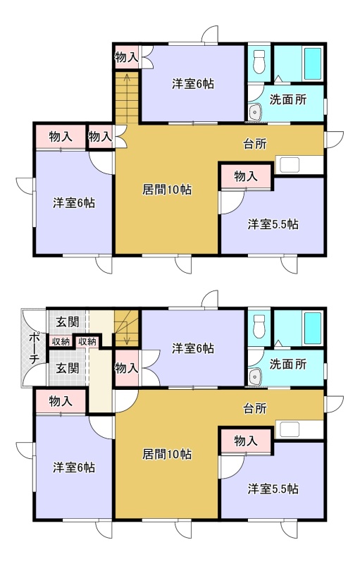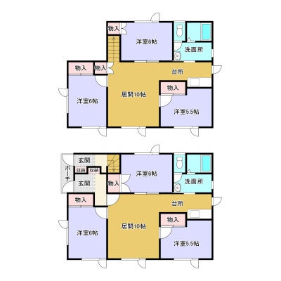 建物の階建 地上2階建 間取り 3LDK×2戸 駐車場 あり各2台可