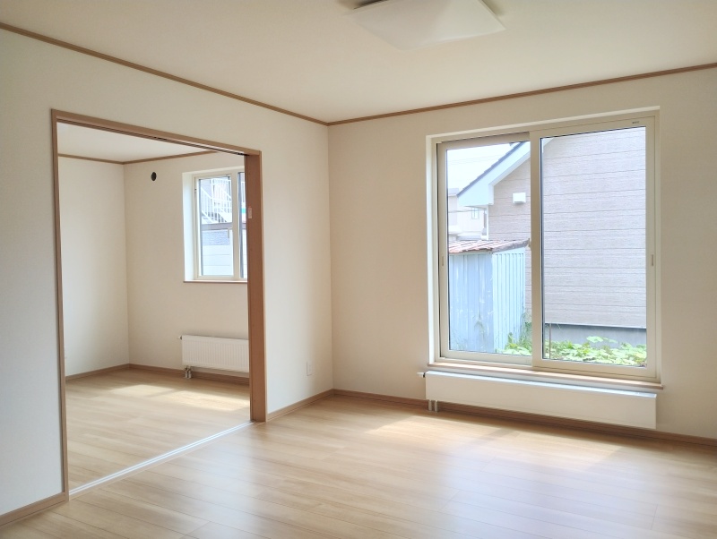 新築は木材の温もりを基調とした天井を設けない造り。内外のW断熱、魔法瓶構造により北海道の住宅に特化した造りになっています。その断熱性能、気密性は本州の住宅でも「夏は涼しく、冬は暖かい」と適しています!