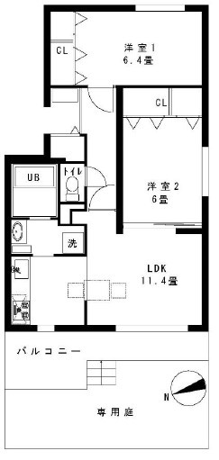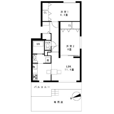 専用庭付きの2LDK