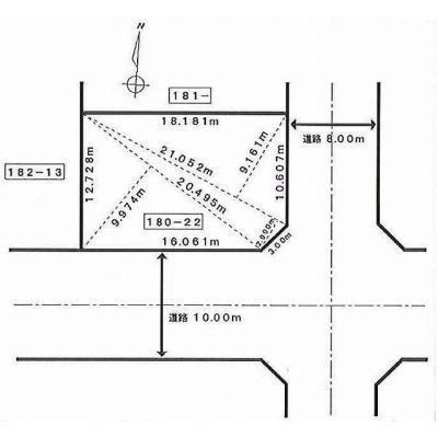 総区画数-/- 接道状況 - 接道状況:二方道路 接道1:南、幅員10.0m、接面10.0m 接道2:東、幅員8.0m、接面10.6m