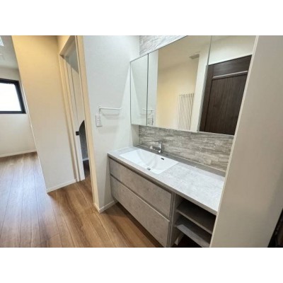 ワイドに使える収納スペース豊富な洗面所