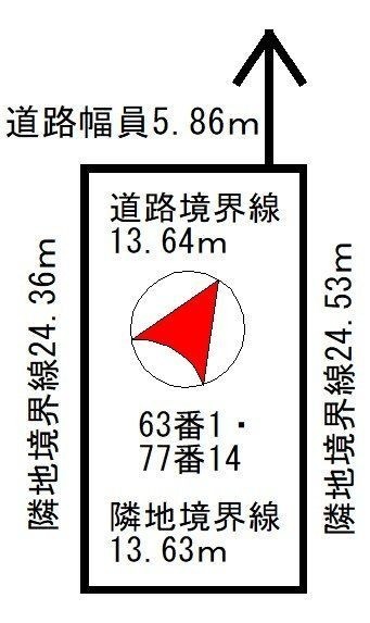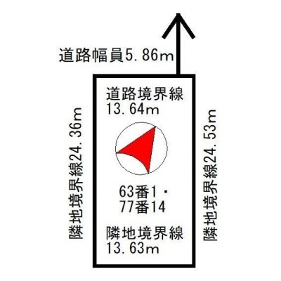 総区画数-/- 接道状況 - 接道状況:一方道路 接道1:公道、北西、幅員6.0m、接面13.7m